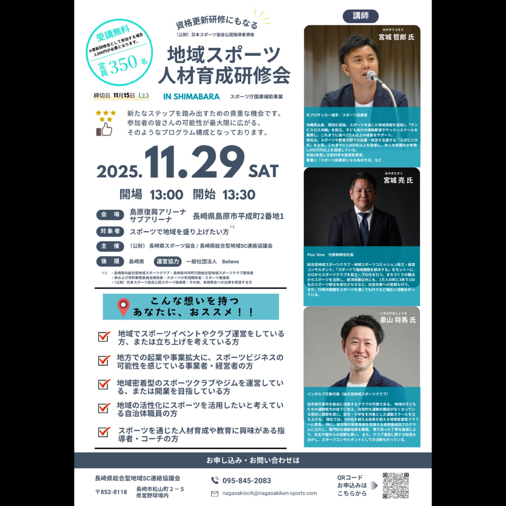 「地域スポーツ人材育成研修会」に講師として登壇いたします。