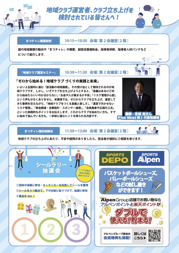 地域クラブ運営や部活動地域展開に興味のある方、ぜひ「まつチャレフェスタ」へご参加ください!